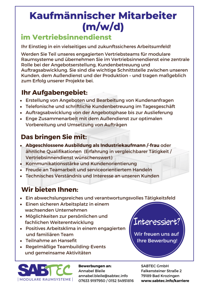 - Kaufmännischer Mitarbeiter (m/w/d) im Vertriebsinnendienst